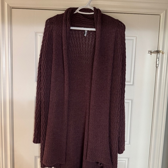 Very good used condition. This is a thick and warm cardigan. It is a burgundy colour.