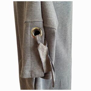 DKR Cottage collection, cottage core style blue-grey casual long sleeved shirt, wide cuffs, front pockets, oversize fit for comfort. Fabric is super soft and comfortable, has decorative eyelets on the cuffs with string and is in excellent condition. Approximate measurements: arms: 19", across chest 21", length 28".