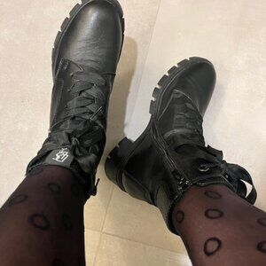 Worn once, these are fun & classy boots with 'ribbon' shoelaces that can be switched up for another 1/2" wide ribbon of any color!