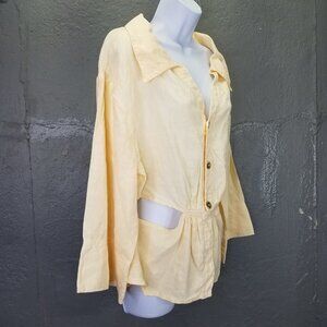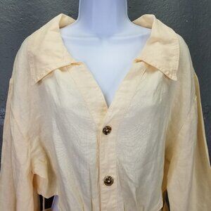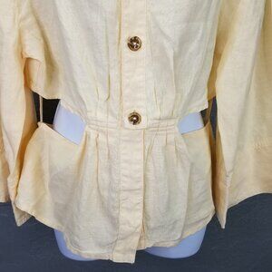 DL1961 Celeste Shirt Women's L Linen Wide 3/4 Sleeve Cut-Out Collared Yellow NEW