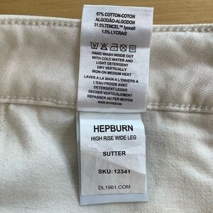 DL1961 Cream Hepburn Wide Leg High Rise Jeans Size 25