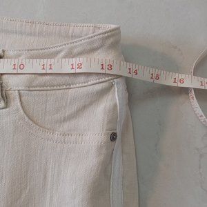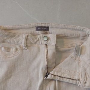 DL1961 Florence cropped Sheridan jeans. Mid-rise, skinny and cropped jeans with frayed hem. Cream/ivory with white tuxedo stipe. Gently loved and in good condition.