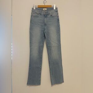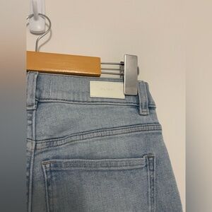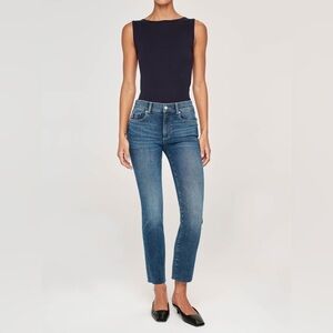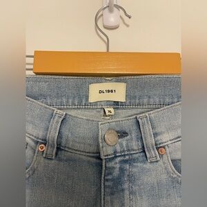 DL1961 Mara cropped light blue raw hem straight jean sustainable denim