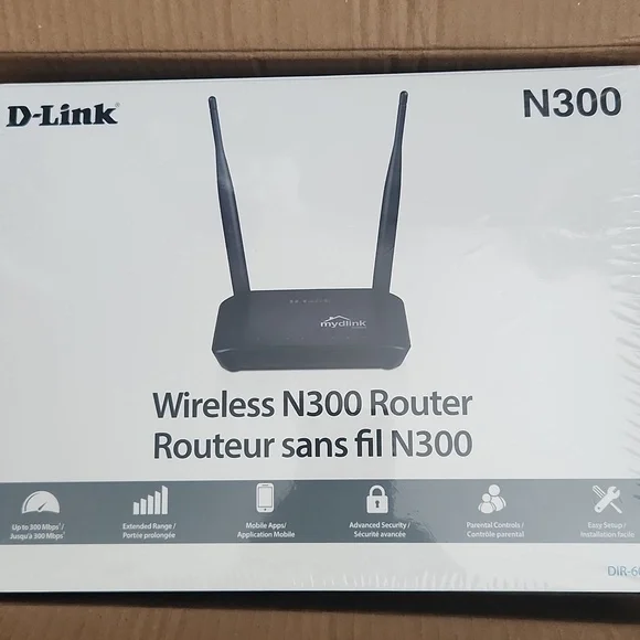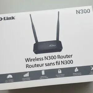 Compact D-Link N300 router. Ensures reliable connectivity.