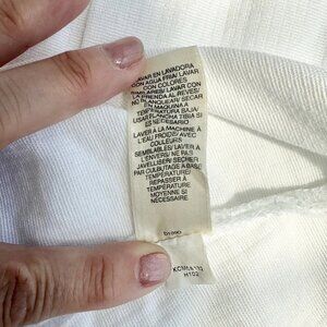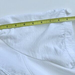 Crafted for comfort and style, this DNKY JEANS size large white jacket is a versatile addition to any wardrobe. The short sleeves and solid white color allows for easy pairing with a variety of outfits, while the pleated accents and subtle logo branding add a touch of elegance.