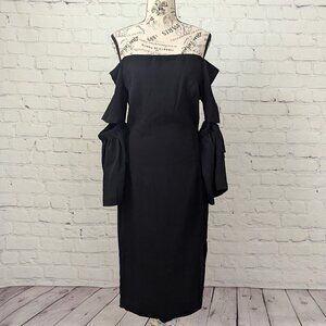 DO + BE Black Off The Shoulder Puffy Sleeves Midi Dress sz Large L NWT