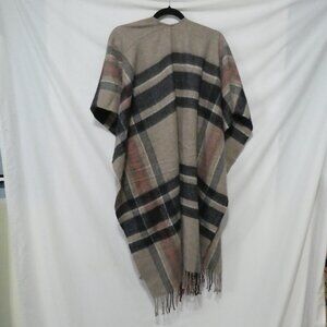 Embrace effortless style with this chic poncho featuring a classic plaid pattern in neutral tones