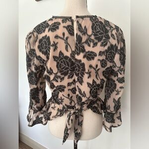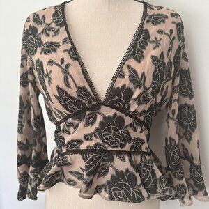 DO+BE Black and Cream Blouse Top V neck Lace All Over Floral Print S NWOT