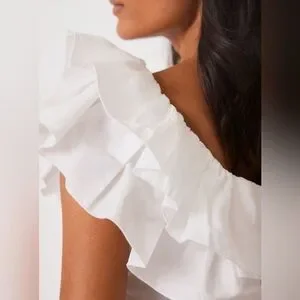 DO+BE White Ruffle Off-Shoulder Top