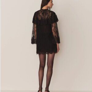 DOEN Arabella Sheer Lace Mini Black Dress Brand new with tags Size S Includes black removable lining dress The Arabella Dress by DOEN is a sheer lace dress with long sleeves and a round neckline. It features a scalloped hem and a flowy silhouette. 100% Nylon