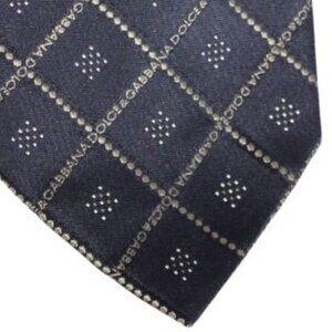 DOLCE & GABBANA 100% Silk Tie Diamond Pattern Black, Gold & White