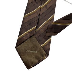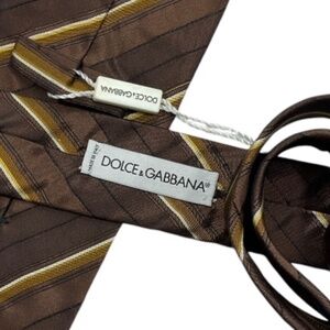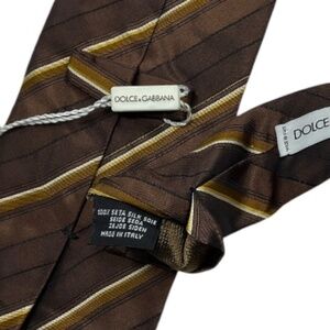 🆕DOLCE & GABBANA Brown Striped Silk LUXURY Tie ITALY