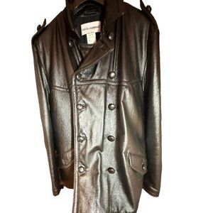 DOLCE & GABBANA MEN'S BLACK LEATHER PEACOAT JACKET / SZ 46 (LARGE)