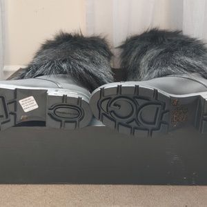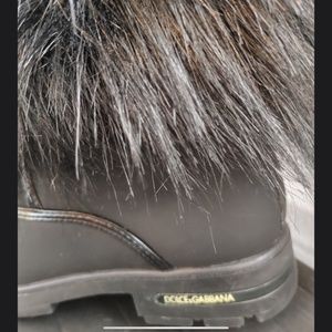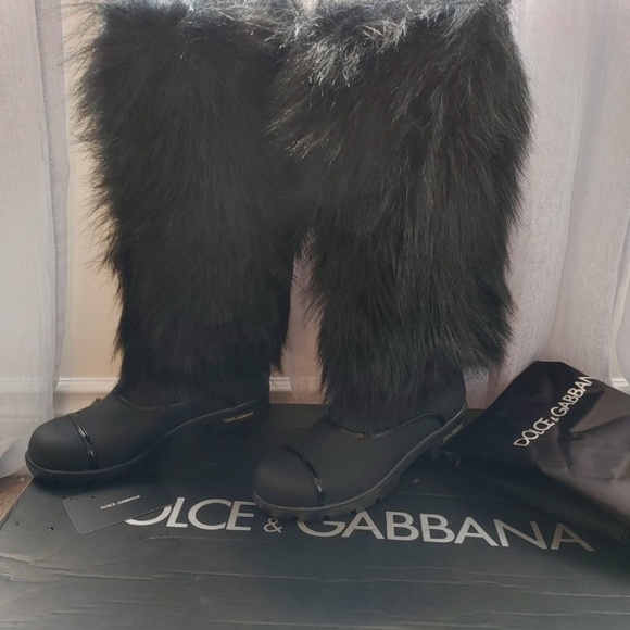 These boots are a one of a kind for your closet ! Faux fur and rubber with the Dolce placard in gold on heel ,can be worn in the rain and in the fall ! So gorgeous and rare . Purchased in Vegas and not available . You’ll def stand out in any crowd !! Wear casual or funky but you’ll definitely be original !! Comes with original box and dust bags ! Pristine never used