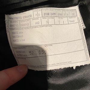 Dolce & Gabbana mens black suit Sz 52L euro or 42L US. Three button, single back vent, 2 outside pockets, 2 inside pockets, lined with Dolce & Gabbana printed lining, Dolce & Gabbana on all buttons. Slight stripe in the pattern. Pants are flat front, straight leg with taper, suit is 100% wool. Excellent condition. Made in Italy. Chic and luxurious!