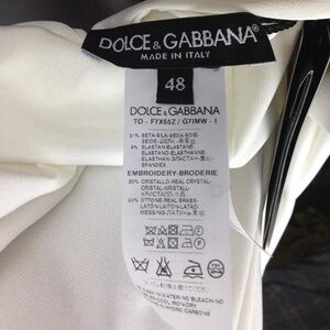 White stretch silk dragon fly tank top from Dolce & Gabbana featuring a round neck, a sleeveless design, a back button fastening and a blue and white crystal dragon fly embellished neckline.