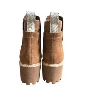 DOLCE VITA Cognac Colour Suede Wedge Chelsea Boots. Chunky Rubber Sole. Heel 2.5". Elastic sides. Sits above the ankles. Comfortable walking boot. Soles clean. Boots are pretty much new. US 6.5