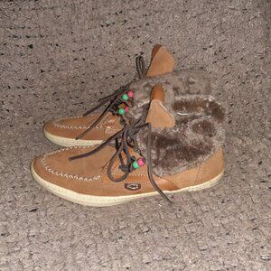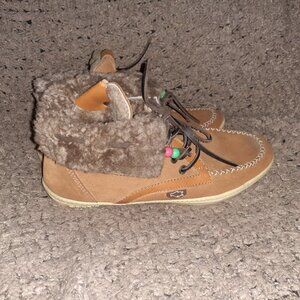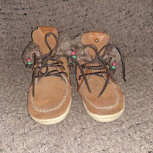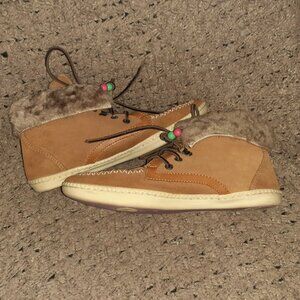 DOLFIE-LOUIS-High Top Moccasins-Caramel Suede-Shearling Lined-Sz 39-Excellent
