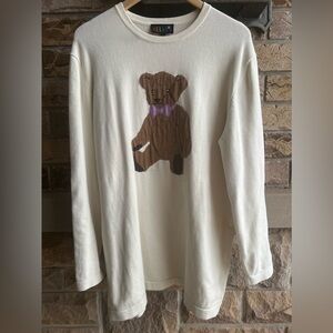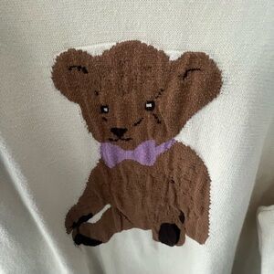 because you've got a taste for the finer things. This oversized knit sweater has a lil' teddy bear knitted graphic on the front.