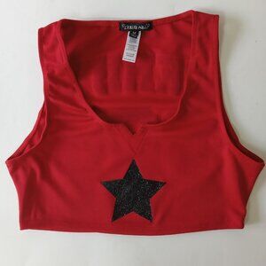 DOLLS KILL Womens Med Derby 666 Cheerleader Halloween Red Crop Tank Top Shirt