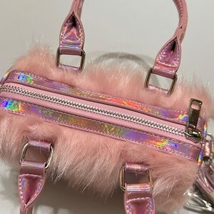 Elevate your style with this chic pink fluffy handbag. Perfect for adding a touch of glamour to any outfit.
