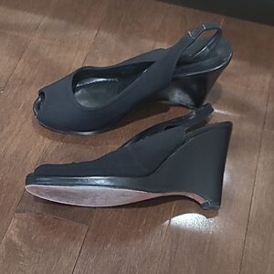 DONALD J. PLINER PEEP TOE BLACK WEDGE SANDALS SIZE 8
