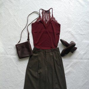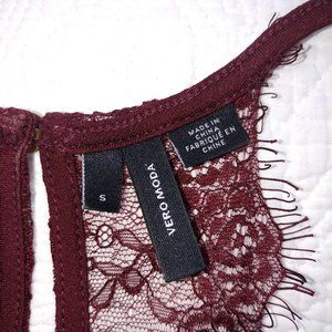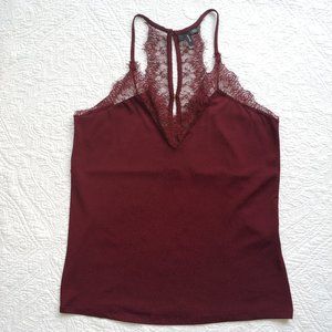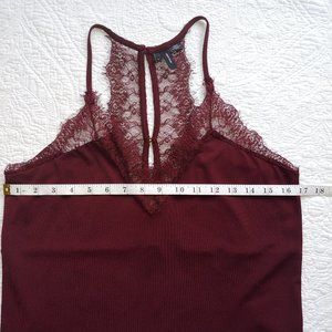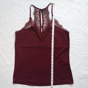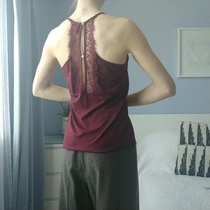 Beautiful Dentelle Lace trim. Two Brass/Gold Buttons at back. Racerback style.