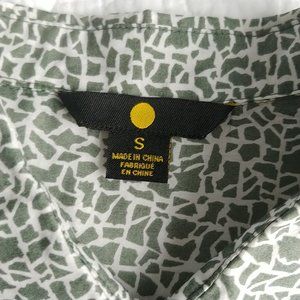 Tiny mother of pearl buttons. Fabric is gauzy, feels weightless.