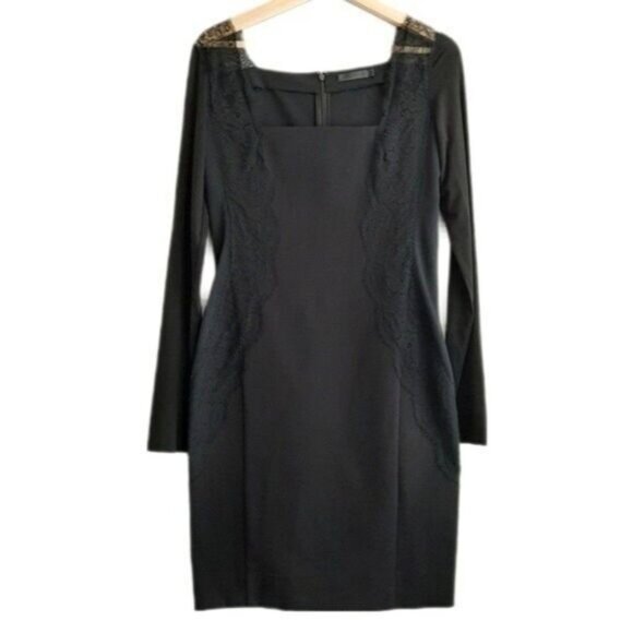 DONNA KARAN \ Italy Long Sleeve LBD Black Lace Detail Dress Sz 8