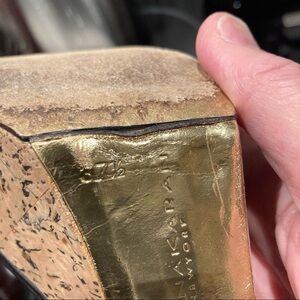DONNA KARAN Sz 37.5 Chunky Heel Platform Strappy Leather & Elastic Sandals
