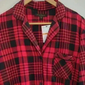 DONNA KARAN | Women's Super Soft Red/Black Plaid Button Up Nightgown