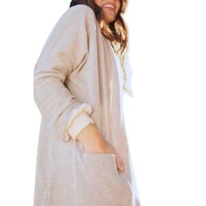 DONNI. Sandwash Ribbed Cardigan Grey Open Front Patch Pockets Duster Women's OS