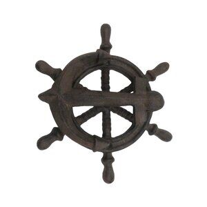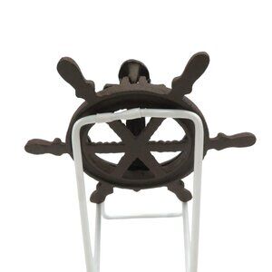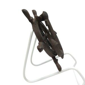 Add a maritime touch to your space with this durable cast iron door knocker, featuring an anchor and ship wheel design for a timeless nautical element.