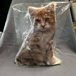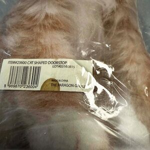 DOOR STOP, CAT ON BOTH SIDES, 15 X 12 ½ x 4 INCHES, ORANGE & WHITE FULL COLOUR, NEW IN ORIGINAL BAG, NEVER USED, NO DAMAGE.