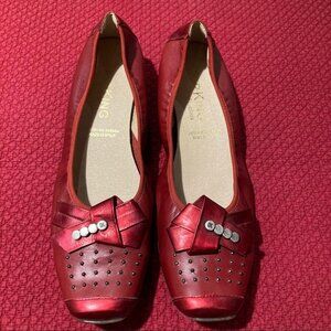 DORKING by Fluchos Red Metallic Slip-On Square Toe Made In Spain sz 41. Gorgeous shoes that are a statement. Dress up or down.