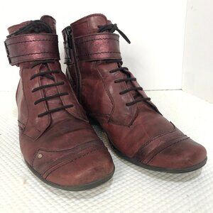 DORKING by Fluchos Agata Red Leather Ankle Booties Size 38 (7.5)