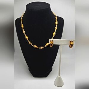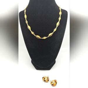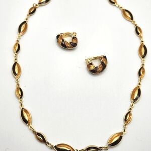 D'ORLAN Vintage Gold Enamel Necklace Clip on Earrings Set Signed 8685