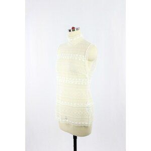 DOROTHEE SCHUMACHER White Sheer Lace High Neck Sleeveless Blouse Top, Size 3/L