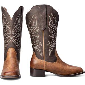 ENHANCED COMFORT: Designed with a wide square toe, these women's cowboy boots prioritize style and comfort. A classic block heel adds a subtle lift without compromising comfort, allowing for easy movement