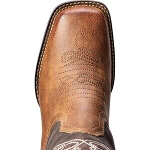 EYE-CATCHING DESIGN: The tan foot contrasts with the dark brown upper, creating a retro two-tone design. Subtle, yet striking, the brown and white western stitching enhances the overall look, adding depth and texture. Perfect for pairing with jeans or dressy western clothes this color palette exudes classic cowboy charm
