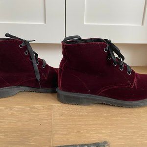 Beautiful pair of red velvet Dr. Martens with satin ribbon lace up. Very romantic/gothic. Sad to part with them! No longer available from Dr. Martens.