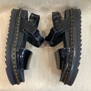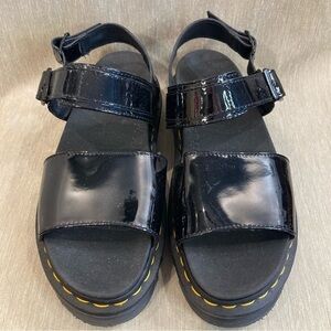 DR MARTENS Sz 10 Voss Patent Leather Platform Buckle Closure Sandals. Comfortable and stylish. Dress up or down. Look and feel wonderful with these edgy, punk, grunge vibe sandals.