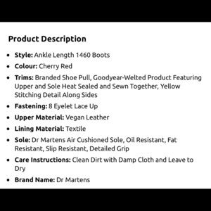 DR Martens Cherry Lace Red Docs 1460 Boots Size 38