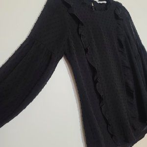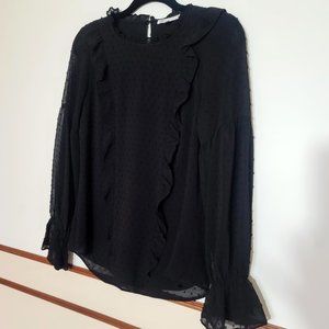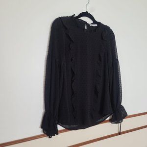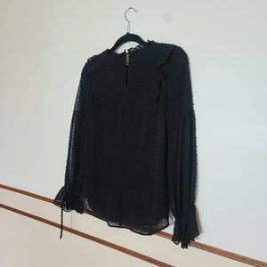 DR2 by Daniel Rainn; Black Dot Long Sleeve Blouse Top