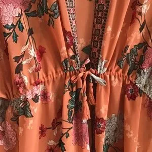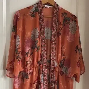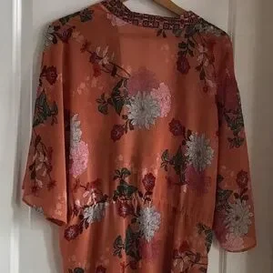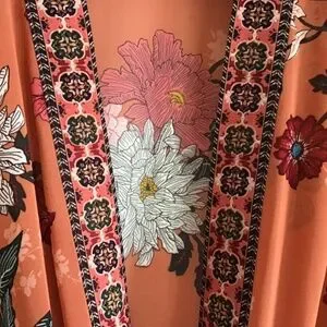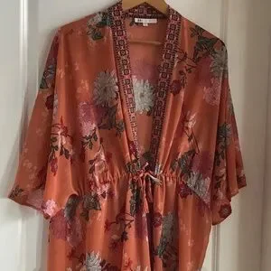 Duster to wear open or closed. Beautiful colours and pattern. Elasticized waist that can be tightened.Wear as beach coverup or with a cami or tshirt. Flows beautifully.says size is xo but this garment is os.
