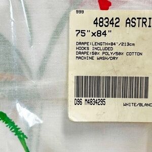 DRAPES, SEARS "ASTRID" 75 X 84 INCHES, WHITE WITH CONTEMPORARY FLORAL, HOOKS INCLUDED, POLY/COTTON, MADE IN CANADA, NEW SEALED IN ORIGINAL BAG, NO DAMAGE