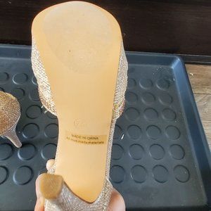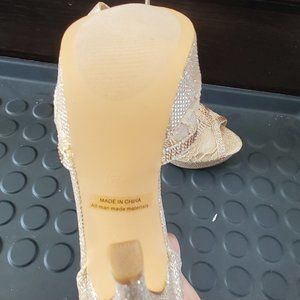 Lovely high heel with rhinestone and lace decorations perfect for a party.