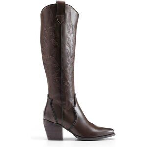 DREAM PAIRS Womens Brown Cowboy Boots Wide Calf Knee High Boots Ladies