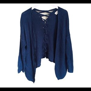 DREAMERS (Nords) Boho Back Lace up Detail Cardigan Navy Blue Size Small-Medium