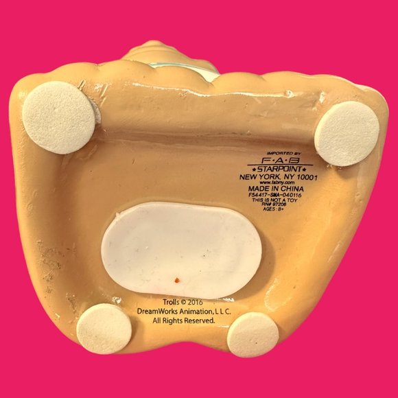 Just adorable pink crazy haired ceramic troll coin bank by Dreamworks. The coin bank measures H9" x W3" x D3.75". In great condition with minimal signs of wear.